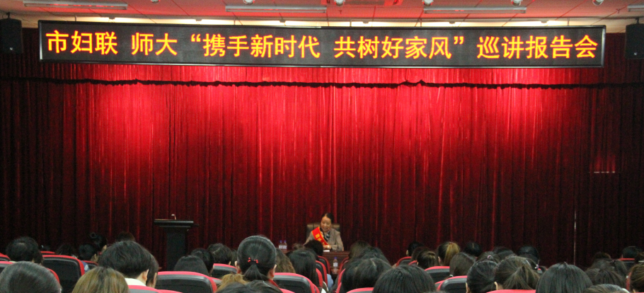 3月6日,我校在第十一教学楼二楼报告厅举办了“携手新时代 共树好家风”巡讲活动。此次活动由四平市妇联与我校妇委会联合举办,市妇女联合会代表和我校基层工会主席、女工委员及女师生代表共同聆听了报告。