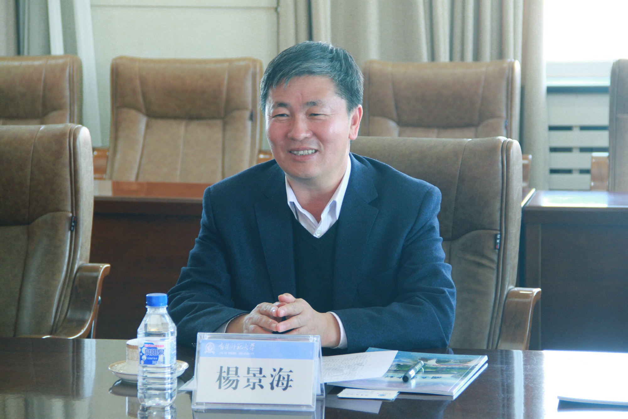 杨景海对郑经伟一行的来访表示热烈欢迎,并向客人们介绍了我校近年来取得的成绩、回顾了2016年两校建立友好合作关系以来的互访情况及师生交流情况。郑经伟对我校的热情接待表示感谢,并向我校介绍了台中科技大学的专业优势,希望与我校加强特色专业教师科研与学生交流。