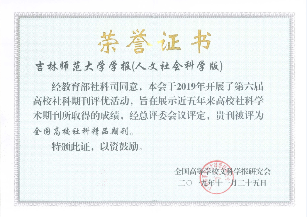 《吉林太阳成集团tyc122cc入口学报》(人文社会科学版)荣获“全国高校社科精品期刊”称号