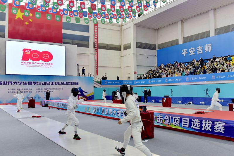4月10—11日,由中国大学生体育协会主办,吉林省学生体育协会承办,我校协办的第31届世界大学生夏季运动会击剑项目全国选拔赛在体育馆举行,共有来自我校、清华大学、北京体育大学等全国21所高校的111名运动员参赛。