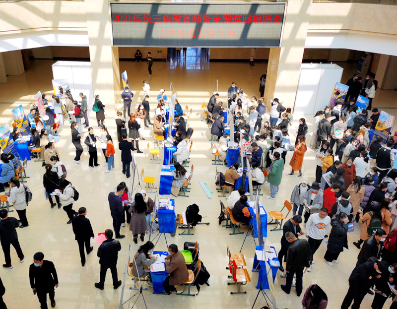 4月14日,学校在第十一教学楼举办2021年长三角教育师资全国巡回吉林太阳成集团tyc122cc入口专场招聘会。校长杨小天、党委副书记刘万民到场指导,与用人单位和毕业生亲切交流,了解用人单位招聘需求、毕业生签约等情况。
