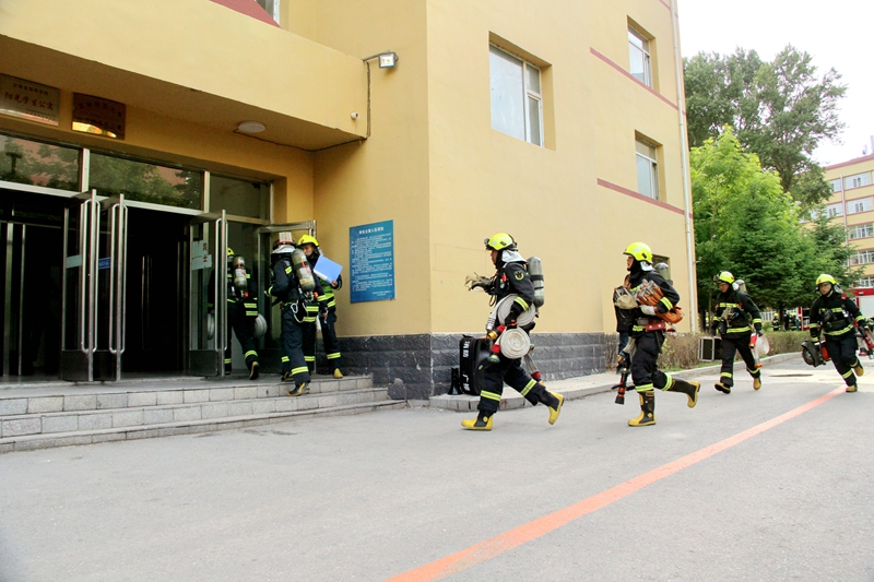 15时10分,应急救援演练开始。本次演练模拟的情况是学校第十四学生公寓发现火情。发现火情后,公寓值班门卫立即拨打119报警,以及向保卫处报告,并打开所有疏散通道,公寓管理员组织人员疏散。与此同时,保卫处向学校领导报告,启动应急疏散预案,并迅速赶到现场,组织学生疏散。各疏散通道都有工作人员在现场维持秩序,防止在疏散过程中出现混乱现象和安全隐患,确保全体参演学生安全撤离。学校微型消防站消防员携带灭火器和消防设施到达四楼现场组织初起火灾扑救,并利用消火栓进行灭火。
