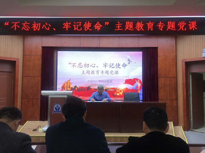 2019年11月7日下午,副校长李海波教授在10教10124多媒体教室主讲“不忘初心、牢记使命”主题教育专题党课,音乐学院党总支书记陈明宏主持。音乐学院党总支、化学学院党总支的师生党员和科级干部,大学外语部直属党支部和机关党委的科研处、学报、作文评点报、中国思想文化研究所、基础教育研究所党支部的党员和科级干部参加了党课学习。