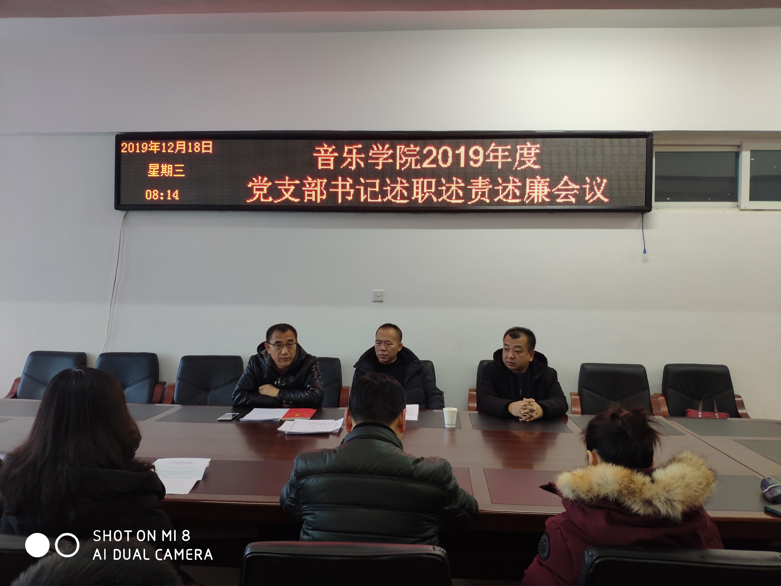 2019年12月18日,音乐学院党总支在3楼党员活动室召开2019年度党支部书记述职述责述廉会议,校党委委派体育学院党总支书记白君伟莅临指导,院党总支书记陈明宏主持会议,院领导班子成员和总支委员、工会主席、市政协委员、科级以上干部、各党支部书记及支委参加会议,博士教师和工会委员作为教师代表参加会议。