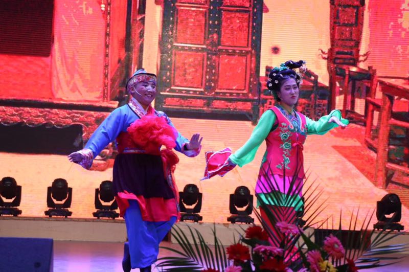 本次音乐会由音乐学院“长白山技能名师”付庆义教授、国家一级演员王丽丽等出演。开场舞《好日子》拉开帷幕。我校函授学员彭丽、李广俊表演的二人转《孝女情深》,充分展现了中华传统美德;青年教师张悦老师指导、2016级、2017级学生用美声合唱的二人转小帽《月牙五更》,别具特色;付庆义、王丽丽表演的二人转《百姓书记》,生动地表现了一位敢于同腐败现象和黑恶势力做坚决斗争的忠诚卫士形象,感人至深;2016级、2017级、2018级学生表演的戏曲联唱《传承之花》,彰显了二人转戏曲艺术传承、发展、创新的顽强生命力;最后在贴近时代、精准扶贫题材的拉场戏《抢地盘》带给大家的欢笑声中落下了帷幕。