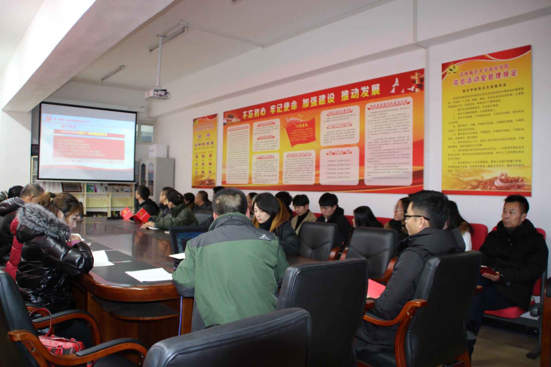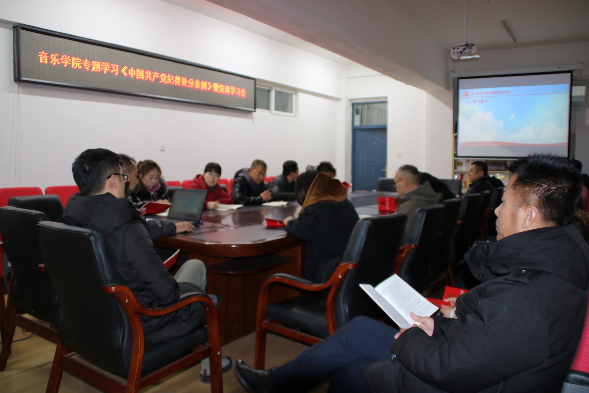 11月28日下午,音乐学院党总支在3楼党员活动室召开专题学习《中国共产党纪律处分条例》暨党课学习会,全体师生党员同志参加了学习会。