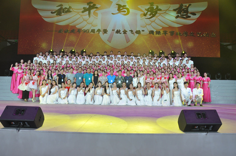 文艺演出包括《和平赞》、《友谊颂》、《家乡美》、《航空梦》四个篇章,分两个场次,7月31日面向各界群众和广大市民,8月1日主要面向参加军事比赛的中外部队官兵。经过两个月精心刻苦排练,音乐学院200人合唱团用中俄双语演出了情景合唱《神圣的战争》、《红梅花儿开》、《莫斯科郊外的晚上》、《喀秋莎》、《并肩战斗》等经典歌曲,时而气势磅礴,时而抒情低徊,时而婉曲悠扬,贯穿并支撑起了整个第二篇章《友谊颂》,把整场演出推向高潮;同时还在最后一个篇章演唱了谢幕歌曲《不忘初心》、《友谊地久天长》。二胡队和古筝队在晚会的第三篇章联袂演奏了《万马奔腾》等民乐联奏,气氛浓烈,特色鲜明,惊艳无比。作为本次晚会演出阵容最大的团队,我们的演出受到组委会和导演组的好评和肯定,成为本次晚会的最大亮点,提高了演出的水平和层次,更博得了包括我校党政领导在内的现场领导、观众特别是俄罗斯、白俄罗斯官兵的多次掌声和啧啧称赞。