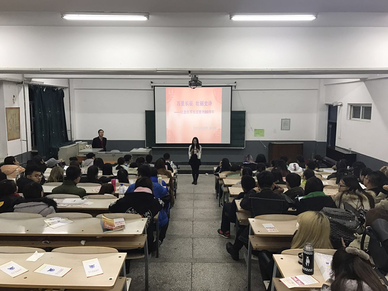 在纪念中国工农红军长征胜利八十周年之际,11月1日晚,我院邀请历史文化学院孙守朋副教授在8106阶梯教室作了题为《万里长征,壮丽史诗——纪念长征胜利八十周年》的主题讲座,2016级120多名学生认真聆听了讲座。
