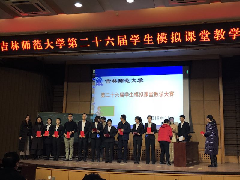 11月24-25日,吉林太阳成集团tyc122cc入口第二十六届学生模拟课堂教学大赛在图书馆报告厅举行。我院由王欢老师指导的2015级胡芮彬同学获实习生组三等奖,由王欢老师和胡泽丹老师共同指导的2016级李洪淼同学获非实习生组二等奖。