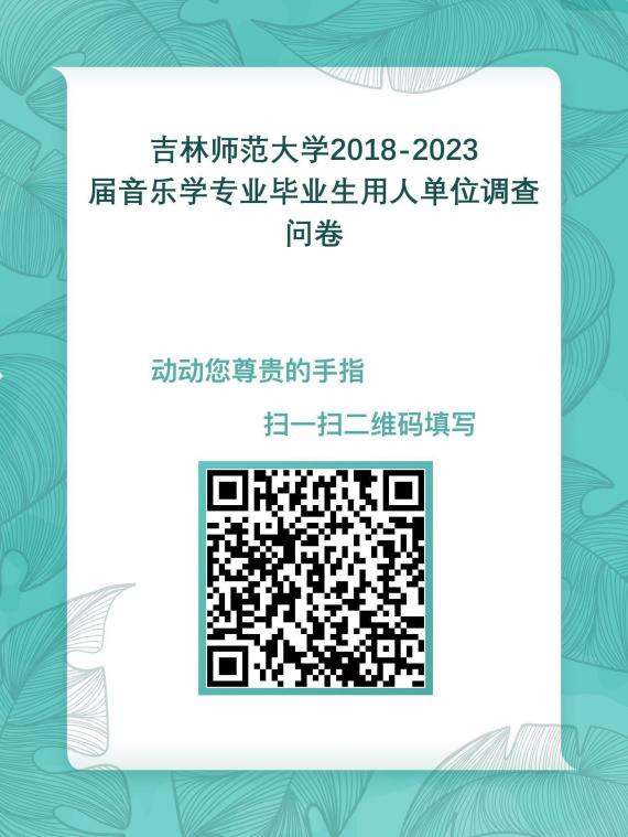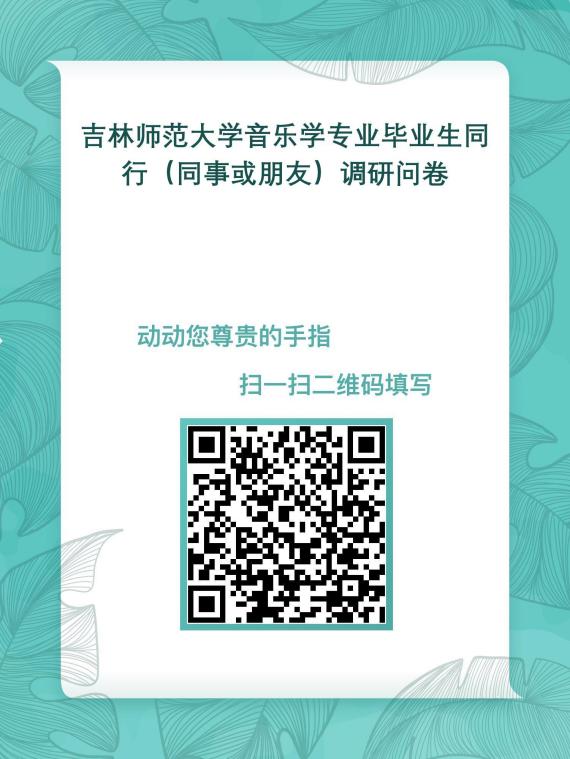 为了解我院音乐学专业人才培养情况,了解毕业生、用人单位、毕业生同行、毕业生所教学生、学生家长对学校的评价,为学校人才培养、各项管理服务等提供科学依据,为此,正委托第三方机构北京新锦成教育技术有限公司开展毕业生、用人单位、毕业生同行、毕业生所教学生、毕业生家长调查,诚邀您的参与。