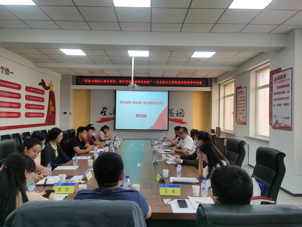 研讨会上,常锐副院长重点介绍了我校思政课的教学改革实践与经验,并对本次研讨会的主题和目标、前期准备与开展情况、工作计划与实施方案等方面进行了全面、细致地介绍。“中国近现代史纲要”教研室主任刘铭赜、“思想道德修养与法律基础”教研室主任胡静、“马克思主义基本原理概论”教研室主任毛华威、“毛泽东思想和中国特色社会主义理论体系概论”教研室主任张宇、“形势与政策”教研室主任于梦衍等分别结合各自教研室负责的课程,对课程特色和内容讲授、知识点分布、教学设计和方法创新等进行了汇报,尤其重点围绕时政热难点剖析、案例教学、跨学科教研等问题进行深入地研讨交流。与会人员就如何结合学校、学院专业教育教学实际,落实立德树人根本任务,推进课程思政与思政课程同向同行、同频共振,进行了热烈地讨论。