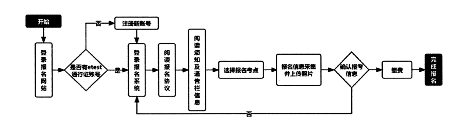 (三)网上报名采用全国计算机等级考试报名系统报名,考生自行登录报名网站https://ncre-bm.neea.cn进行报名操作。考生按系统提示进行账号注册,注册提交的个人信息必须真实、准确,注册成功后登录系统,填写个人基本信息、报考信息、上传本人近期免冠照片后确认报考信息。确认报考信息后考生点击报名页面上的支付按钮,报名页面将跳转到支付平台的页面,按照支付平台的提示信息完成考试费支付。支付成功后,考生不能修改报考信息或退考退费。