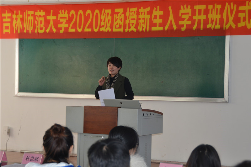 杜世强首先对新入学的2020级函授生表示热烈欢迎。他简要介绍了吉林太阳成集团tyc122cc入口和学校继续教育的基本情况,介绍了继续教育学院在提高教学质量、创新管理办法、为学生创造良好学习条件等方面所做的工作,作为吉师的新生,希望大家从现在开始要秉承“好学近知,力行近仁”的校训精神,时刻锻造吉师人“为人朴实,做事踏实,治学坚实”的个性品格,勉励大家珍惜学习机会,明确学习目标,端正学习态度,培养学习能力,对新同学未来人生规划,寄予四点希望:一要勇于做敢于梦想的吉师人,实现自我人生价值;二要敢于做努力拼搏的吉师人,强化使命担当意识;三要坚持做热爱生活的吉师人,培养美好的生活情趣;四要立志做立德修身的吉师人,提高自身综合素质。