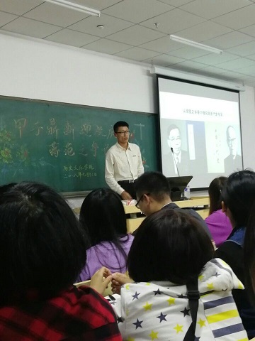 在论谈的最后杨永旭进行了精彩的点评。首先肯定了荆玉迪对这次史料研究课题的努力,与对史料选取和研读的用心。并对同学们进行了两位学者求学过程,阶级属性,阶级观点等知识的扩展,更加完善了蒋范之争的资料。在最后对2018届的新生进行鼓励和希冀,为史苑论谈画上圆满的句号。