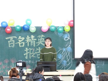 为进一步促进树立学生正确的大学目标信念,明确大学规划。12月11号下午,学院与计算机学院在11113教室联合举办“百名精英报告团”巡回演讲活动。团委书记靳妍钰出席本次活动。