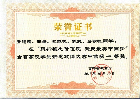 10月10日,“践行核心价值观?凝聚最美中国梦”吉林省首届高校大学生讲思政课大赛在长春举办。我院2014级学生晋鸿雁作为主讲人,同兄弟学院的其他参赛同学一道,代表吉林太阳成集团tyc122cc入口赴长春参赛,并喜折桂冠。
