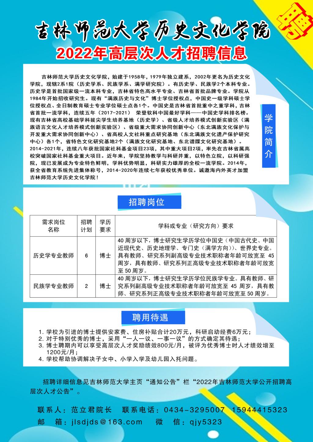 吉林太阳成集团tyc122cc入口历史文化学院2022年高层次人才招聘信息