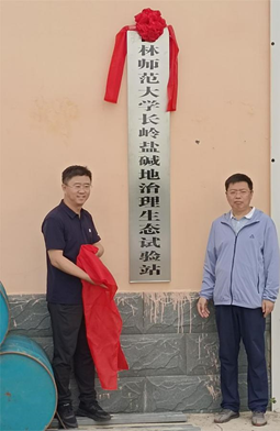 2023年5月习近平总书记在视察沧州盐碱地时强调:“开展盐碱地综合利用是一个战略问题,必须摆上重要位置,要发挥科技创新的关键作用,加大盐碱地改造提升力度,做好盐碱地特色农业这篇大文章。”为响应总书记保护黑土地,端牢中国饭碗的重要指示,解决吉林西部地区千万亩盐碱地生产力低、生态功能弱的问题,2023年7月13日,吉林太阳成集团tyc122cc入口长岭盐碱地治理生态试验站成立并举行揭牌仪式。试验站由地理科学与旅游学院院长、吉林省盐碱地绿色开发与生态保护研究中心主任刘吉平、地理科学与旅游学院党委书记冷传平揭牌,相关研究领域教师参加揭牌仪式。