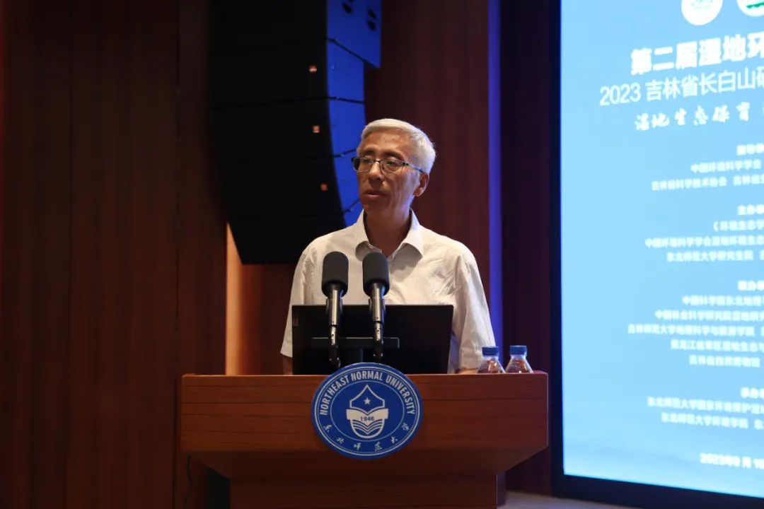 我校党委副书记刘九庆教授出席会议并致辞。本次论坛主席、湿地环境生态保育与功能开发专业委员会荣誉主任盛连喜教授致欢迎辞,同时展望了湿地环境生态领域的发展。生态环境部科技财务司科技处一级调研员刘海波、吉林省教育厅科研与研究生教育处处长、省学位办主任宋辉、中国科学院东北地理与农业生态研究所副所长武海涛研究员分别致辞。吉林省生态环境厅科技与财务处处长王淑花女士、吉林省科学技术协会学会学术部部长方艳红女士,吉林省林草局湿地管理办公室郭宝华主任,我校科技处李阳光处长,研究生院孙伟副院长出席了开幕式。开幕式由中国环境科学学会办公室主任卢佳新主持。