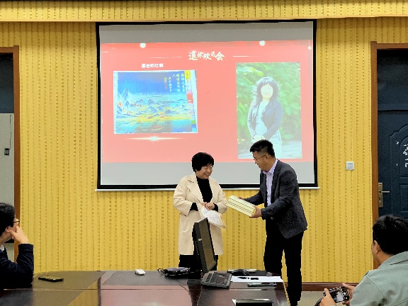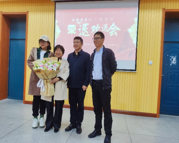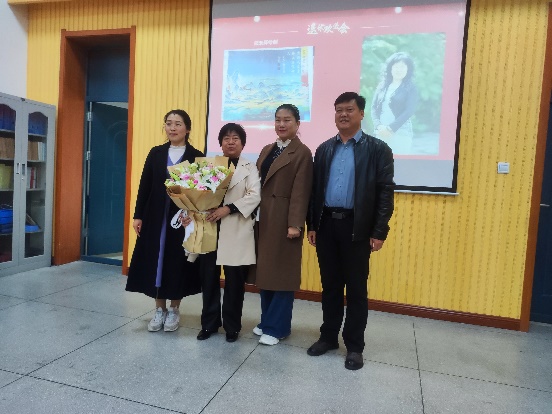 随后,院党委书记冷传平和学院工会主席甘静为邵兰霞老师送上鲜花和纪念品。