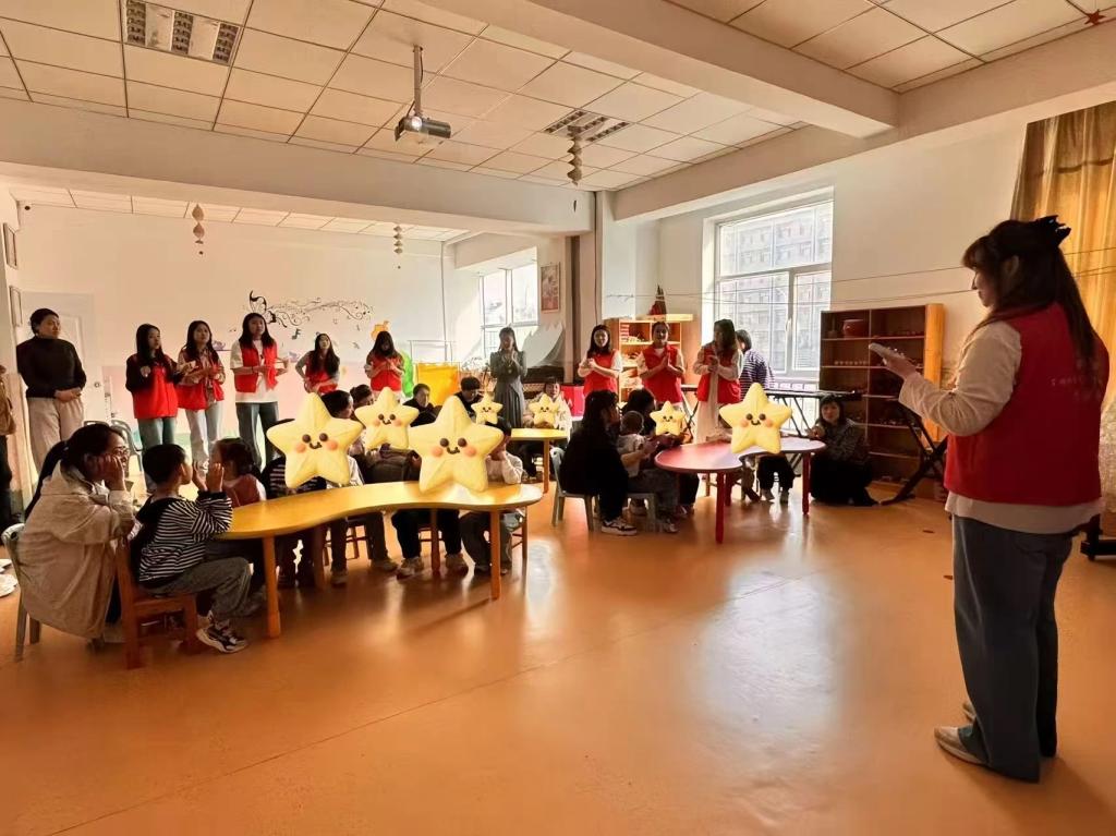 活动伊始,志愿者们带来歌曲《左手右手》,清澈的歌声如溪流润泽心田,孩子们随着节奏轻轻拍手,嘴角扬起幸福的微笑。紧随其后的《巴啦啦小魔仙》舞蹈,让孩子们随着志愿者的动作挥动双手,欢快的舞步织成秀锦,让彼此的心在此织作友爱的霓裳。