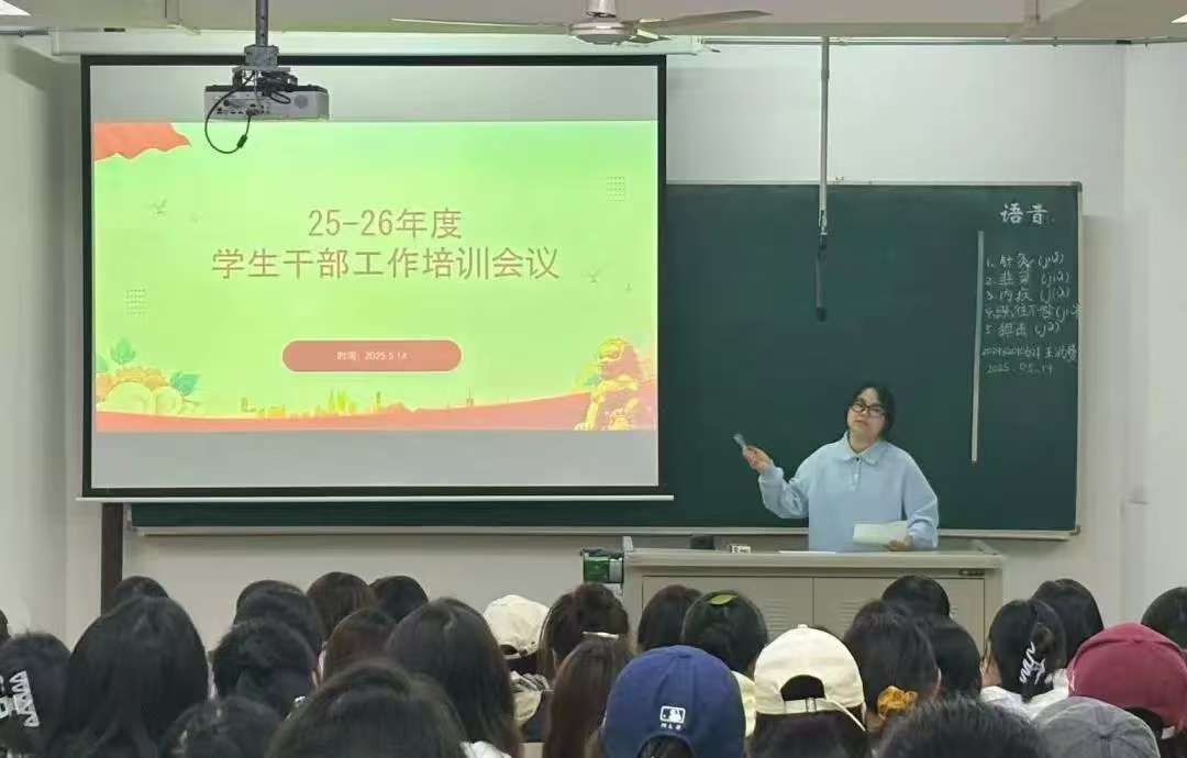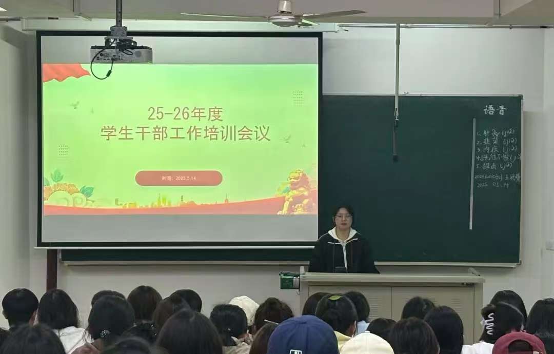 为加强学生干部队伍建设,提升综合素质,凝聚青春力量,我院于6月4日在田家炳教育书院10225教室召开2025-2026学生干部工作会议。我院分团委书记兼学工办主任马荣陆、辅导员兼学院工会主席杜世豪出席,邀请部分2022级学生干部代表分享工作心得,2023级、2024级全体学生干部参加。