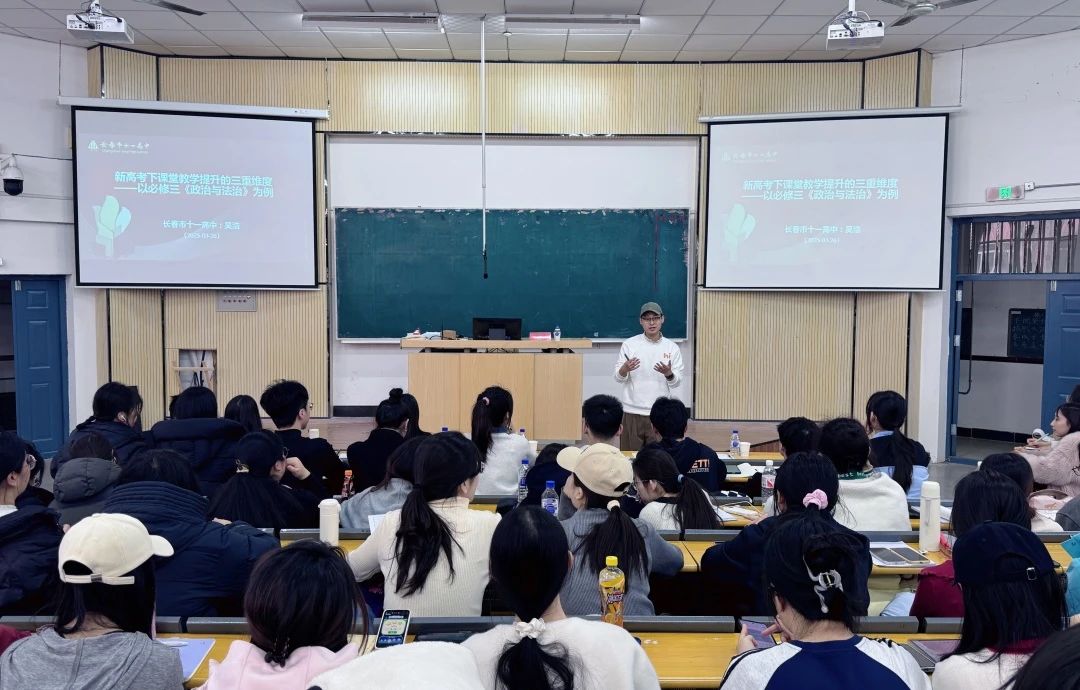 本次讲座特邀长春市十一高中高一政治备课组长、长春市骨干教师吴浩担任主讲人。思想政治教育系主任刘天竹、教法教研室主任苏永利,刘丽艳出席本次活动。2022级部分学生、2024级全体研究生、2023级全体本科生参加。
