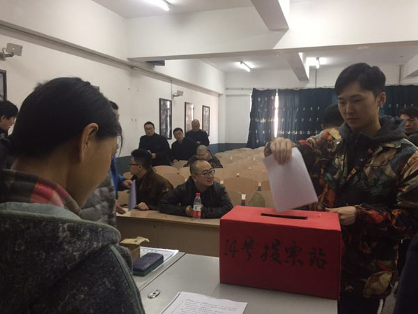 宋洪峰同志按照民主程序公布了到会人数,工会主席庞哲同志宣读了选举办法,介绍了代表分配名额和指导性比例要求。大会以举手表决方式通过了监票人、计票人名单。每位教职工依次上台投票,最后大会通报了计票结果,共产生学院代表8人参加学校会议。
