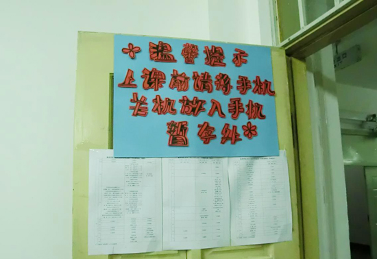 美术学院携手开展以“建设和谐美院”为主题的无手机课堂活动,在教室内布置收纳袋,旨在做到理性求知,营造更好的学习环境,宣扬优良学风。在教室的一角,墙纸上清晰地写着“手机存放区”几个醒目的打字,警醒同学们上课将手机存放于此。手机整齐有序的放在收纳袋中,美术学院的学生们发挥自己专业特长,墙纸的绘制和手机袋的“化妆”都做得井然有序,使教室内增添了几分活力。简单大方的版面,形象生动的图案,置于美术学院每个教室内,一目了然,宣传告诫同学们的上课纪律。