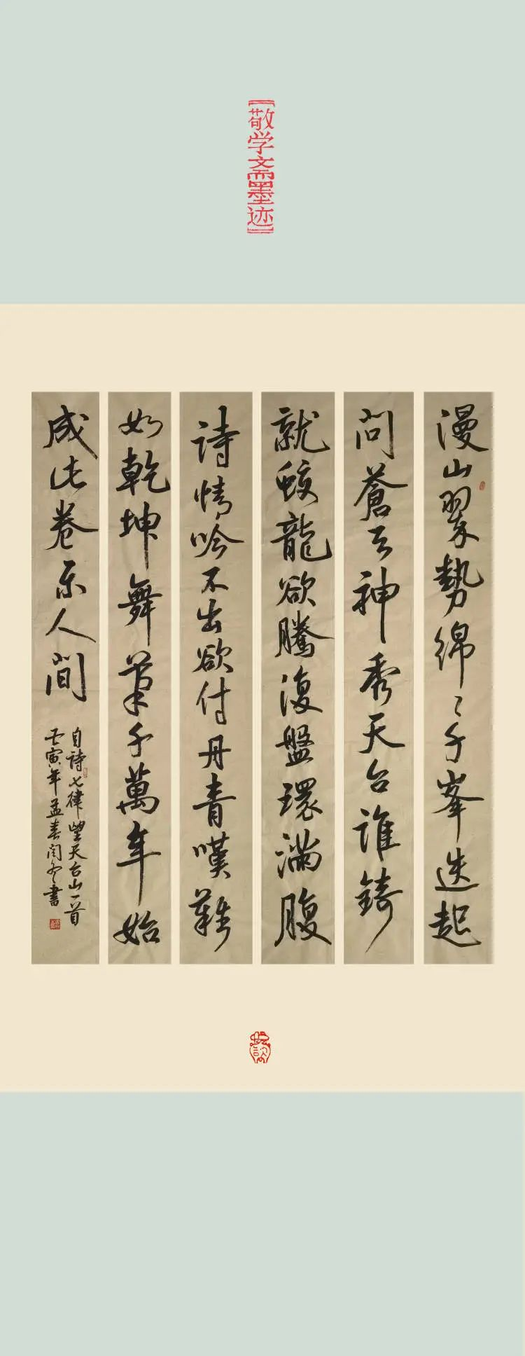 鲍建男《山川异域,风月同天》180cm×40cm×2隶书2022
