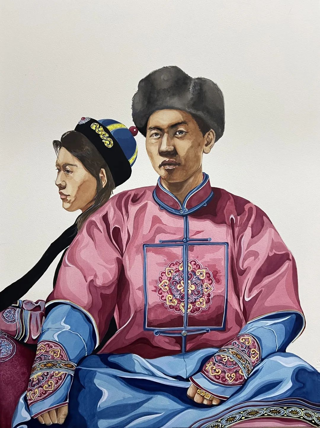 刘传《春风下的蒙古族同胞》107cm×78cm水彩画2022