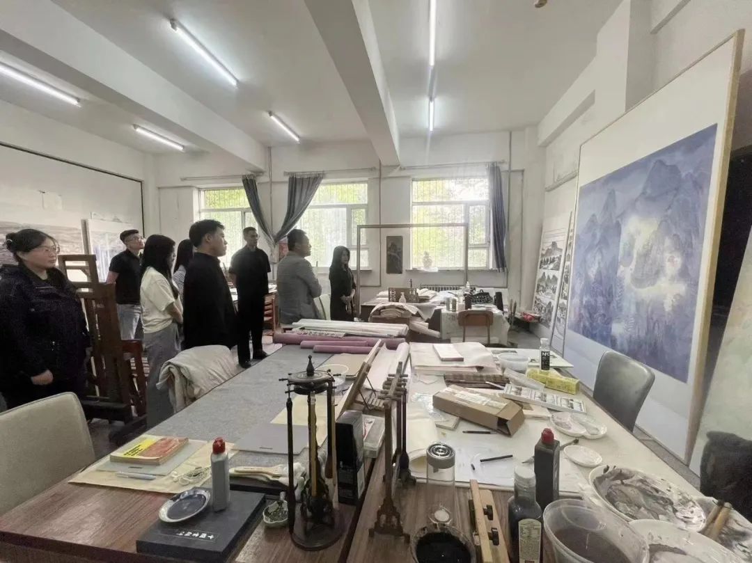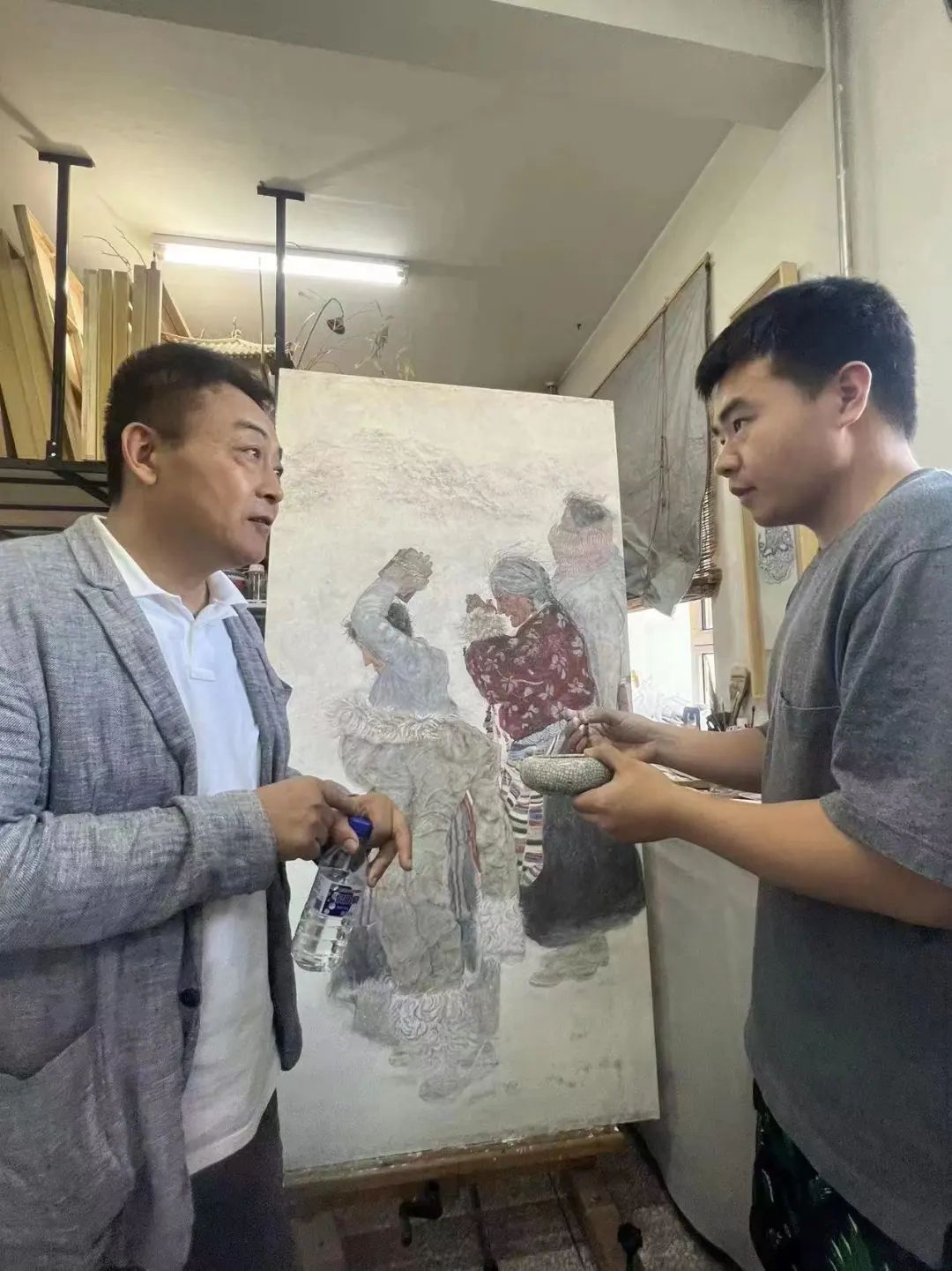 于澎教授此行还走访了美术学院教师工作室和研究生教室一一点评师生近期的艺术作品,特别是对国家艺术基金项目的申报草图等进行了具体指导。