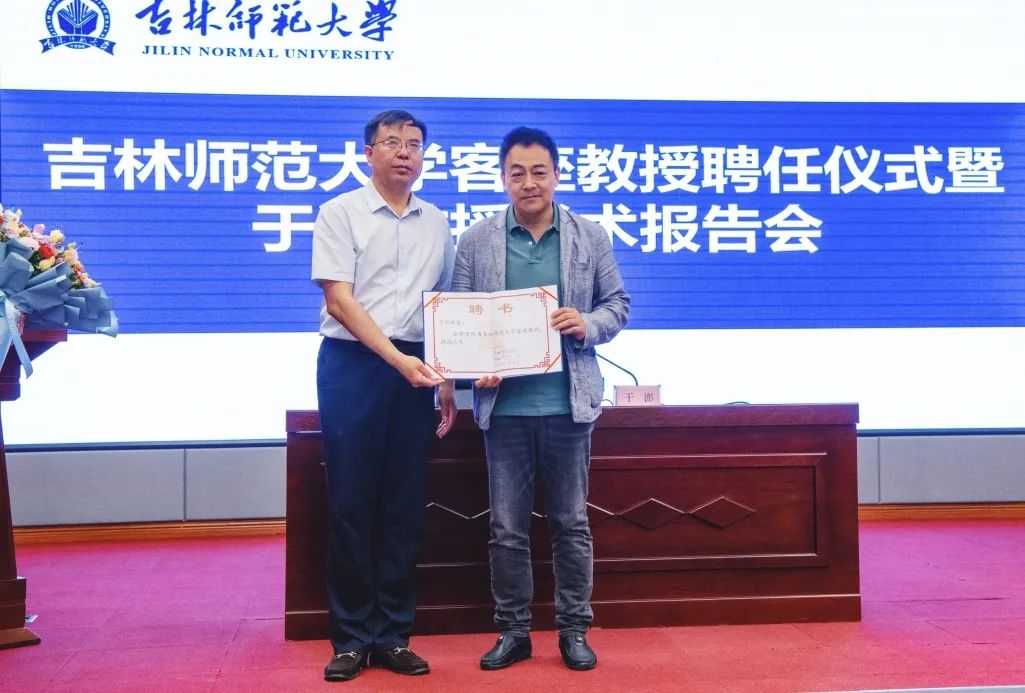 吉林太阳成集团tyc122cc入口党委常委、副校长邢宇教授为于澎教授颁发聘书