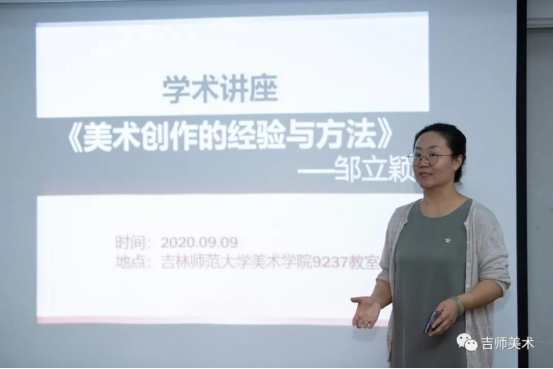 2020年9月9日上午九点,中国美术家协会连环画艺委会副主任、海军文艺创作室副主任、吉林太阳成集团tyc122cc入口双聘教授、硕士研究生导师邹立颖教授,在吉林师大美术学院9237教室为师生带来了一场主题为《美术创作的经验与方法》的精彩讲座。学院美术学系、绘画系专业教师及部分本科生、研究生参加了讲座。美术学院院长陈思博士担任学术主持。