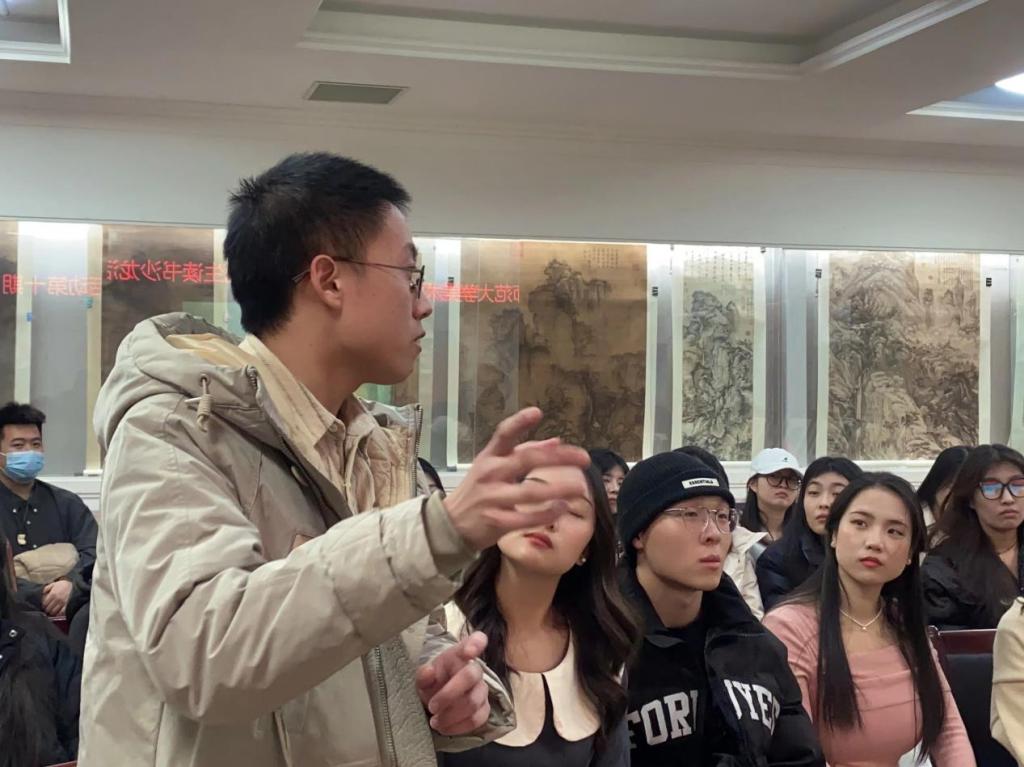 过程中,同学们被两位分享者的娓娓道来所折服,感受到中华优秀传统文化的独特魅力和艺术作品之中所蕴含的精神食粮。讨论环节,同学们踊跃发言,通过认真地倾听,每位同学都结合自身专业,提出深入思考后的问题,师生间进行了充分的互动和交流。最后,商应丽博士做出精微的点评和总结,指出如何才能更有效地读书,并强调了终身读书的重要意义。
