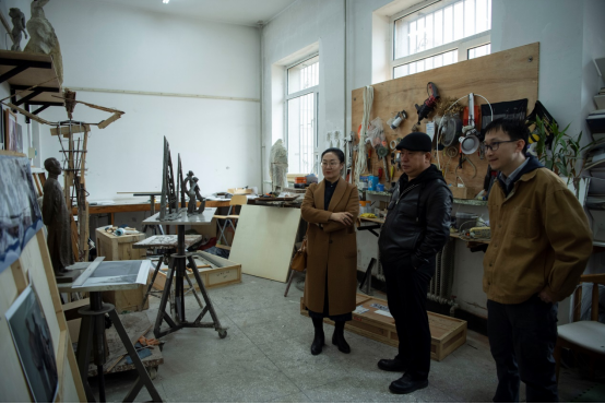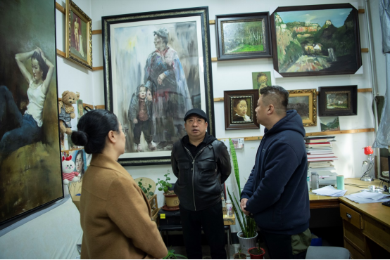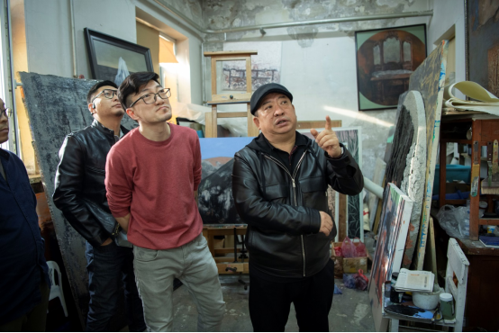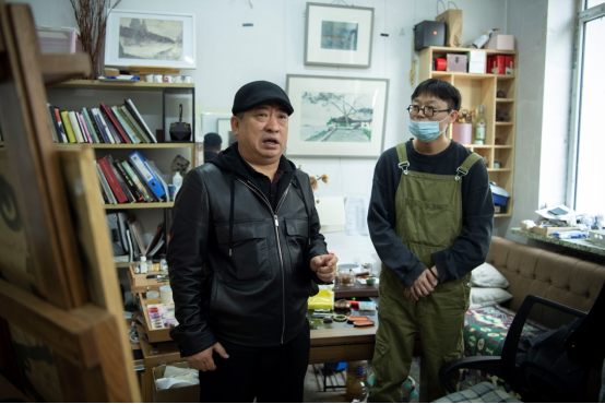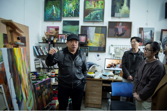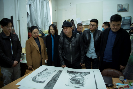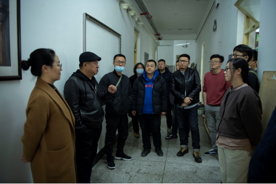 讲座后,王建国教授做客美术学院主题创研工作坊,实地走访工作室,观看和了解教师近期艺术作品,他对我院广大教师的勤奋与成果给予高度肯定,同时结合教学、研究和展览等工作提出中肯详尽的意见,并给予深度指导。