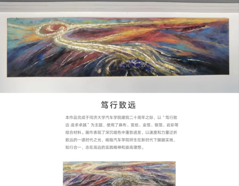 长期大量的艺术创作使于澎教授积累了丰富的经验,并形成了自身独特的艺术语言体系。他以代表中华优秀传统文化的“中国智慧”题材作品为例,选取“上善若水”“韬光养晦”“厚德载物”“壁立千仞”“砥砺前行”“勤则不匮”“和而不同”等具有精神内涵的文化语言为载体,运用综合材料意象绘画的艺术形式,将其所蕴含的内在理念和丰富哲理进行视觉化的表达,并分享了艺术创作过程的心得体会。
