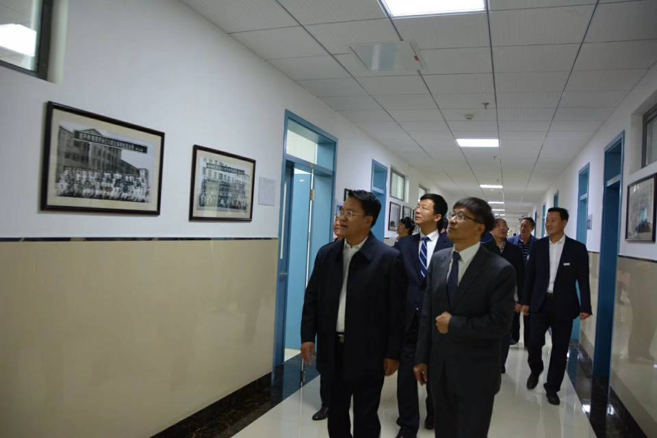 图三:七九级校友、中共白城市委书记庞庆波在学院领导陪同下参观学院长廊文化——老照片墙