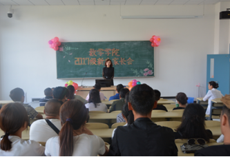 9月2日,学院在1114教室召开了2017级新生家长联席会。副院长杜弈秋、数学系主任程晓亮、统计系主任腾飞、团委书记李萌出席会议。杜弈秋从学院的办学历史、师资力量、专业建设、招生情况等方面进行了详细介绍,两位系主任分别从专业管理方面进行讲解,李萌主要介绍了相关学生工作,同时希望与家长建立密切联系,共同关注学生的成长成才。