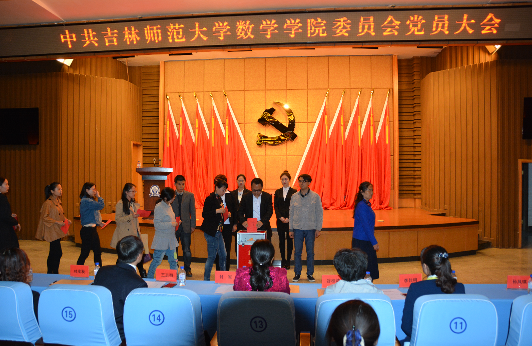与会代表审议并通过了王志强同志所作的党委工作报告。按照差额选举的原则,推选(以姓氏笔画为序)王志强、王佰海、付军(女)、杜奕秋(女)、杨艳秋(女)、程晓亮、滕飞等七名同志为新一届中共吉林太阳成集团tyc122cc入口数学学院委员会委员。