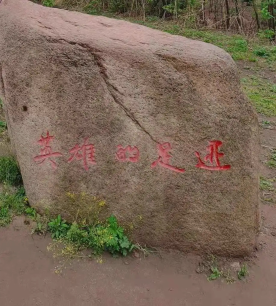 秀美的塔子山,苍翠依然,半山坡草坪处“英雄的足迹”五个大字熠熠生辉,有力彰显了我辈对革命英雄的缅怀与崇敬,成仁有志花应碧,杀敌留红土亦香!