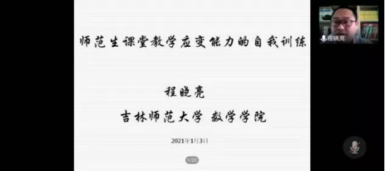 为提高人才培养质量,增强学生的教学技能,我院于2021年1月3日举办了假期系列活动之教学技能讲座,本次讲座邀请了院长程晓亮老师主讲,主题为:师范生课堂教学应变能力的自我训练,讲座通过腾讯会议线上课堂方式开展,2017级、2018级学生参加了此次培训。
