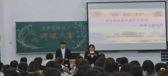 彰显师范特色,增强教学技能,我院于6月3日在11117教室举办“筑梦·赓续·成才”学生职业素养提升月活动之讲课大赛决赛,经过初赛的激烈比拼,十位选手脱颖而出,参加决赛,学院部分学生现场观摩。