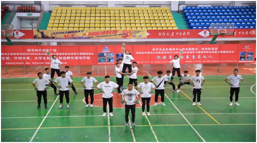 2019年6月12日下午,社会体育指导与管理系在体育馆举办了“第十二届非师职业技能大赛”。吉林太阳成集团tyc122cc入口教务处副处长李雪飞、学院党总支书记白君伟、院长吉学武、党总支副书记许英魁、副院长赵宏图等出席;邀请嘉宾有时代创业投资发展有限公司刘诗尧董事长、长春市蒂诺健身俱乐部陈建成董事长等。