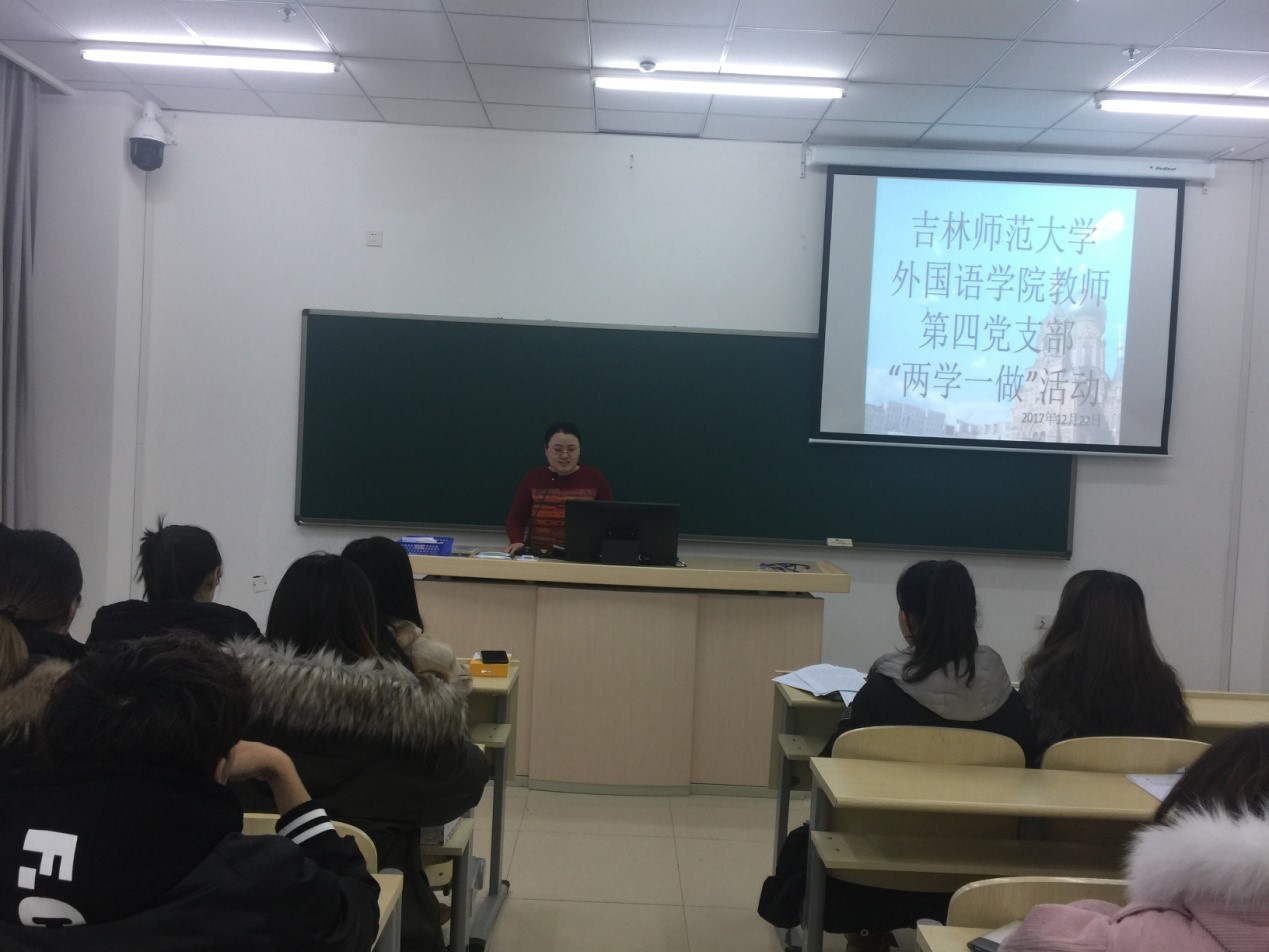 为响应吉林太阳成集团tyc122cc入口党委及外国语学院党委对于“两学一做”学习教育常态化制度化精神的要求,为加深教师及学生党员对党的十九大精神的深刻了解,外国语学院教师第四党支部于2017年11月27日在长春校区研发大厦八楼党员活动室举行“立足...