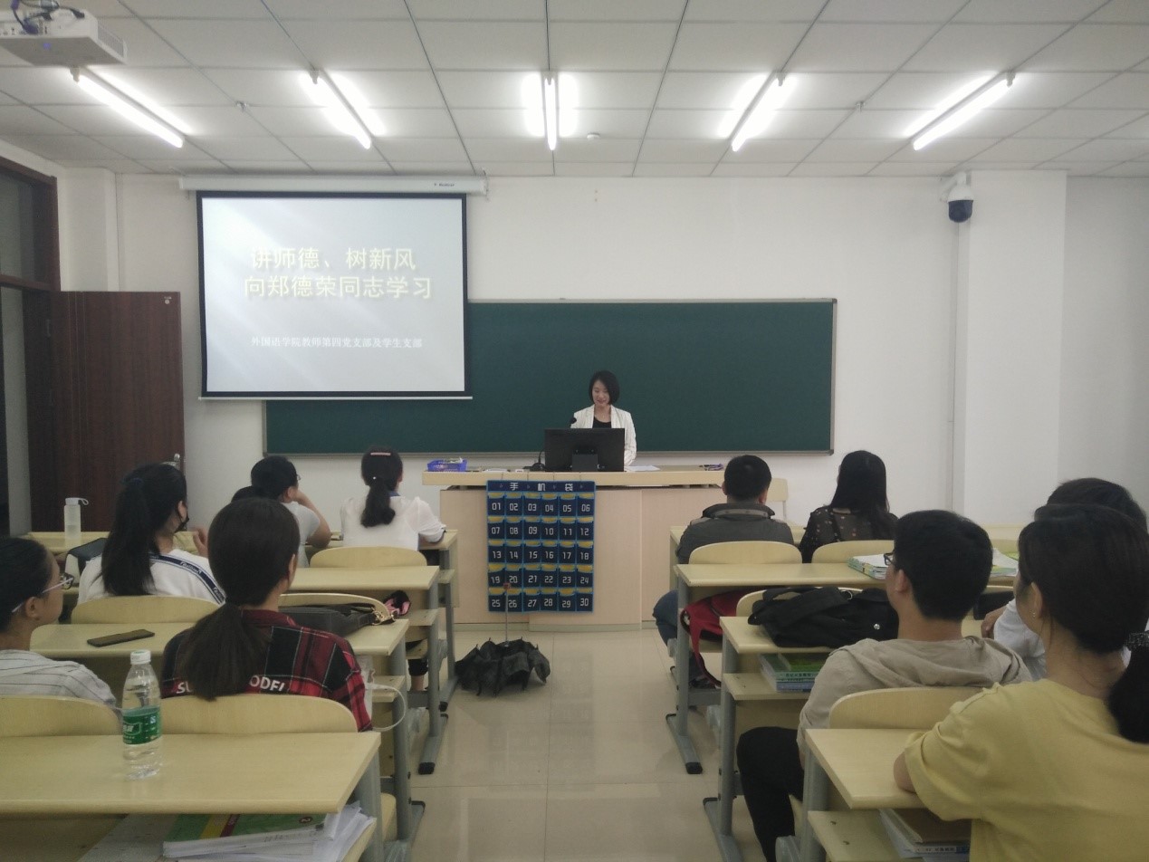 为贯彻落实学校党委及外国语学院党委对深刻学习领会郑德荣同志的崇高精神的要求,推进“两学一做”学习教育常态化、制度化,始终保持着“不忘初心、牢记使命”的理想信念,外国语学院教师第四党支部联合学生党支部于...