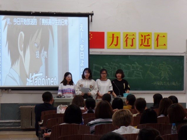 为了提高学生的口语表达能力,丰富学生的文化生活,我院日语系于6月8日在2311教室举办了“第二届日语配音大赛”。出席本次大赛的有日语系系主任刘丽芳老师,外教金庭香理、濑川千鹤老师,聂亮老师、李雯老师。在日语系老师同学们的热切期待和雷鸣般的掌声中,15级日语学生分为五组,为观众们奉献了一场精彩绝伦的视听盛宴。