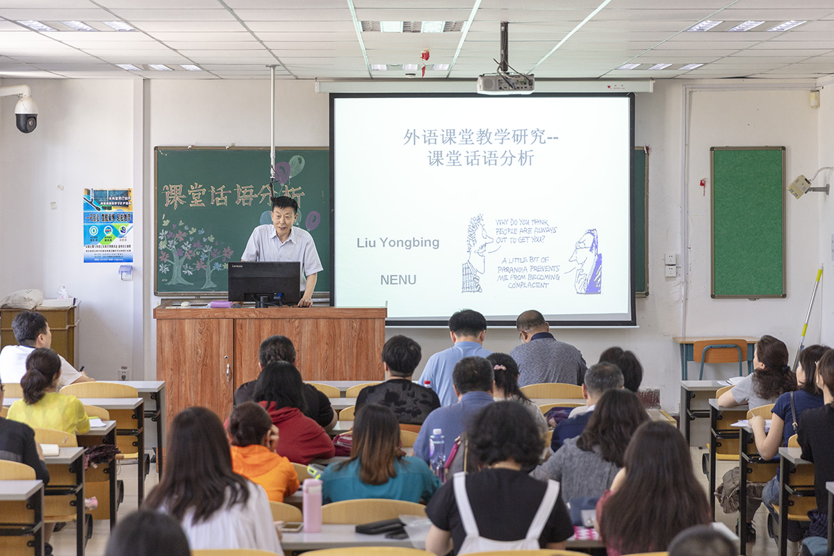 6月19日(星期三),东北太阳成集团tyc122cc入口外国语学院博士生导师刘永兵教授来我院讲学,并与学院近40名教师和40名英语专业学生就“课堂话语分析”的研究方法等进行了交流。刘永兵教授通过梳理相关研究并结合其开展的实证研究中的具体案例,生动具体地讲解了课堂话语分析的方法、发现与意义。本次讲座不仅对拓展学院教师的研究领域和改善研究方法具有积极的促进作用。同时,对于教师和未来从教的学生了解课堂话语的重要性以及掌握课堂话语的正确使用方法均具有启示作用。