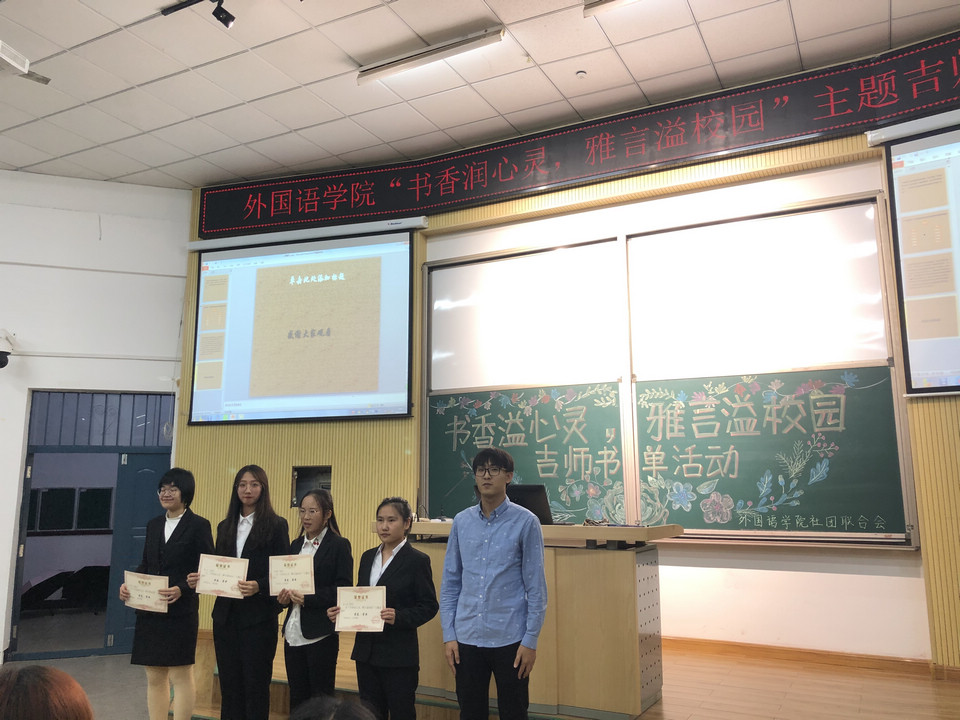 11月17日晚,学院社团联合会主办的“书香润心灵,雅言溢校园”吉师书单分享交流会活动圆满完成。来自2019级的11位同学向同学们推荐自己喜欢的书目,分享自己的读书心得与思考,与会同学们收获颇多。