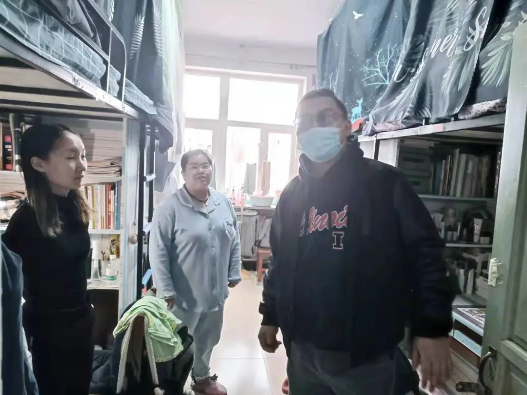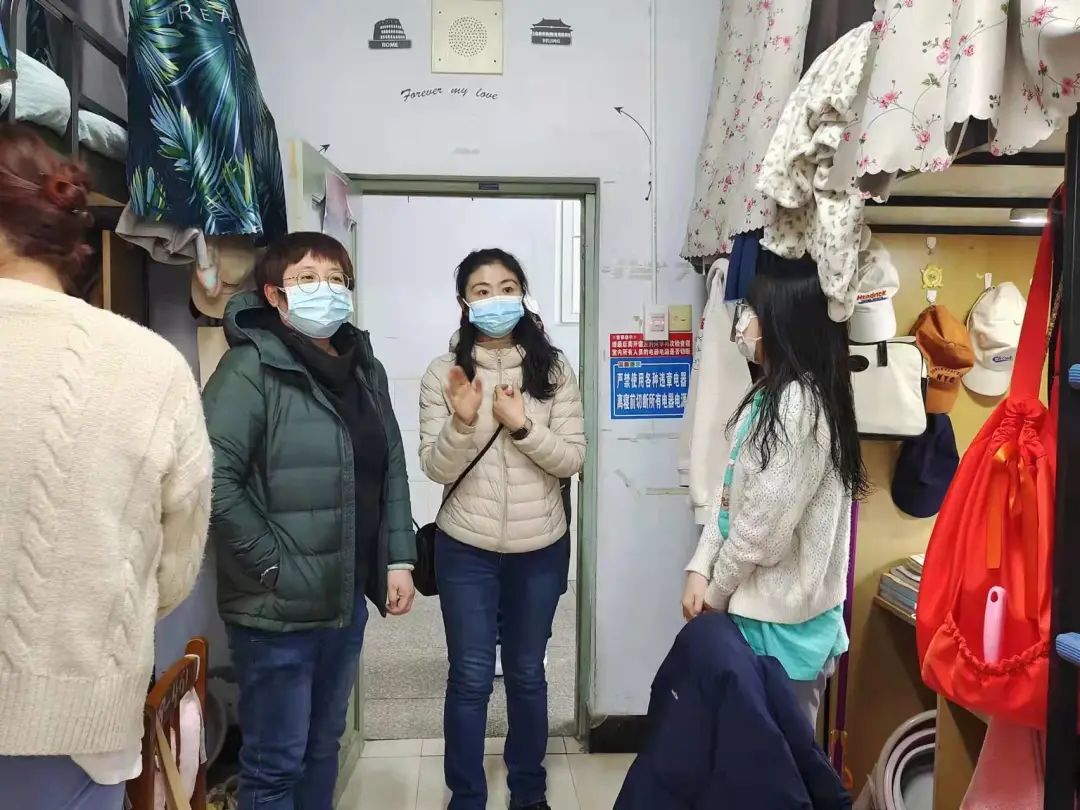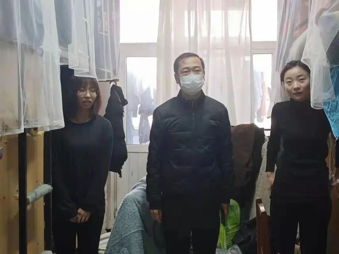 学院领导心系学子,定期前往学生公寓进行慰问与安抚,及时了解学生在学习、生活、健康方面的困难与诉求,听取学生的意见与建议,鼓励学生保持积极乐观的心态,科学应对疫情,劳逸结合地安排好近期学习生活。
